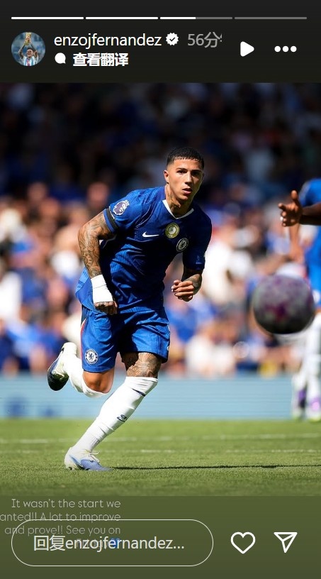 新赛季英超首轮,切尔西0-0战平水晶宫未能收获开门红,阿根廷中场恩佐本场首发出战,他赛后发文写道:“这不是我们想要的开局,有许多需要改进和证明的地方,星期五见。”